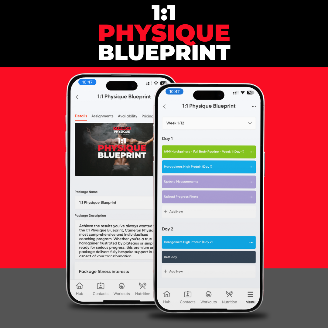 Build real muscle, boost your strength, and transform your body—fully guided inside the Cameron Physique App with daily support and proven systems.